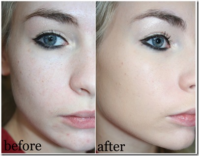 My camera had made the foundation colour look a lot more vivid and contrasting with my skin tone, but I can assure you, the foundation is less yellow than it appears here, and the inside of my arm is a few shades paler than my face, so all is well. The last image is the foundation blended into the skin. Absolutely seamless!